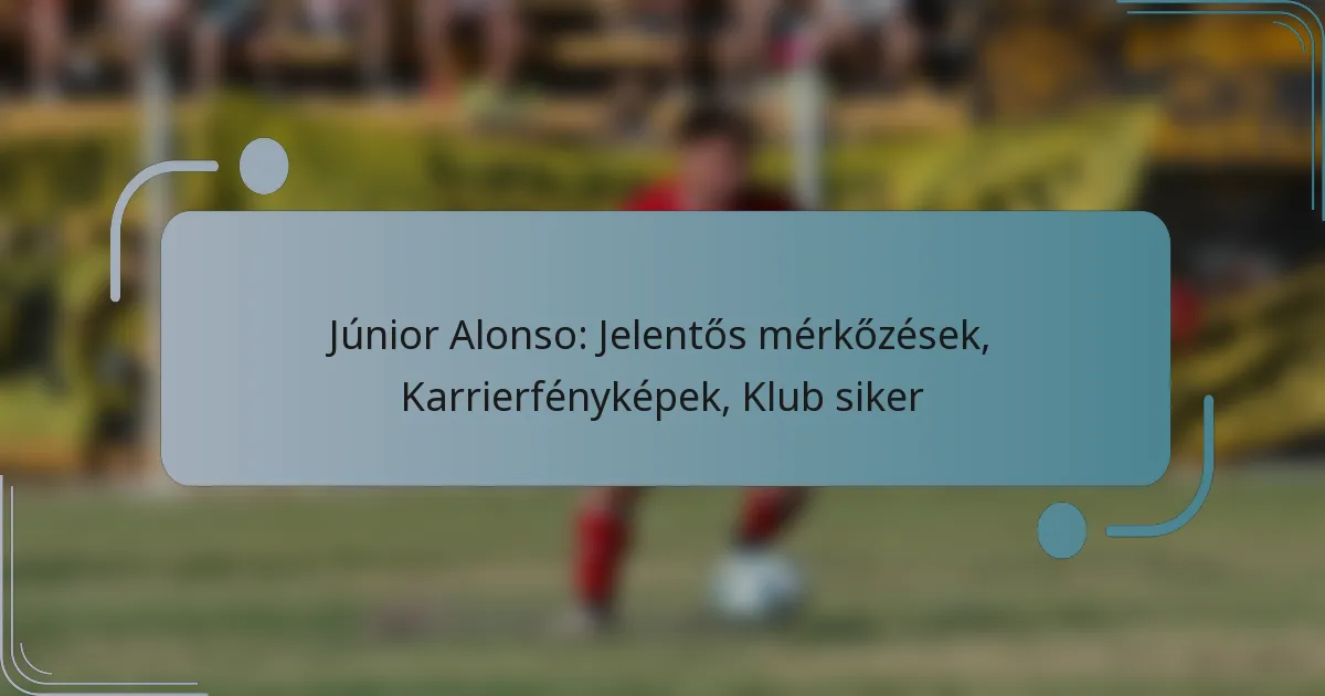Júnior Alonso egy tehetséges labdarúgó, aki hatékony teljesítményéről ismert jelentős mérkőzéseken, mind klub-, mind nemzetközi szinten. Karrierje számos eredménye és hozzájárulása révén kiemelkedő sikereket hozott, beleértve a több bajnoki címet és ligagyőzelmet. Alonso tehetsége és eltökéltsége folyamatosan kulcsszerepet játszott csapatai diadalában.